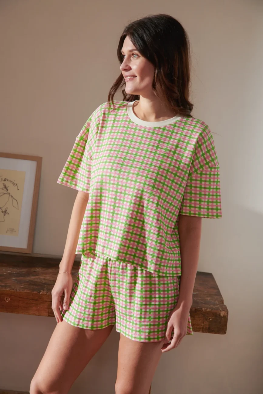 Pyjama Coton bio Vichy vert et rose – We are Jolies