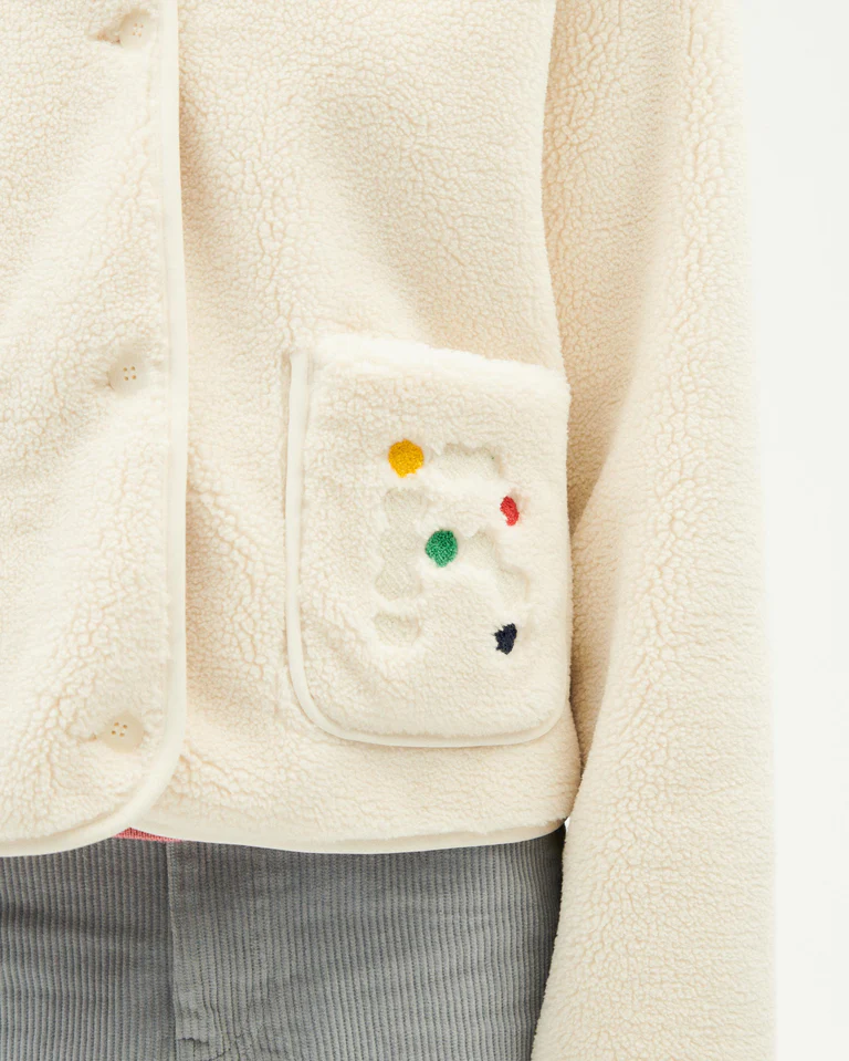 ✓ La veste Kourtney en coloris Ivory de Thinking Mu est une pièce chaude et structurée, conçue en 100 % polyester recyclé certifié GRS. Son tissu épais façon peau de mouton (530 gsm) offre un confort enveloppant et une allure moderne. Dotée d’un col montant, de manches longues, d’une fermeture boutonnée et de poches extérieures et intérieures, elle adopte une coupe regular et une longueur courte, idéale pour les superpositions. Pensée dans une démarche éthique, cette veste incarne l’engagement de Thinking MU pour une mode durable et responsable.